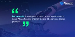 • AI tools can even detect bugs by recognizing anomalies in the way the software behaves, such as performance drops or crashes that humans may miss.