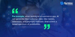 • AI helps in QA by automatically generating large datasets, including edge cases and rare situations that might not occur often but could still break the system.