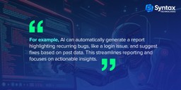 • AI helps in QA by analyzing patterns in code and identifying potential bugs based on known error patterns.